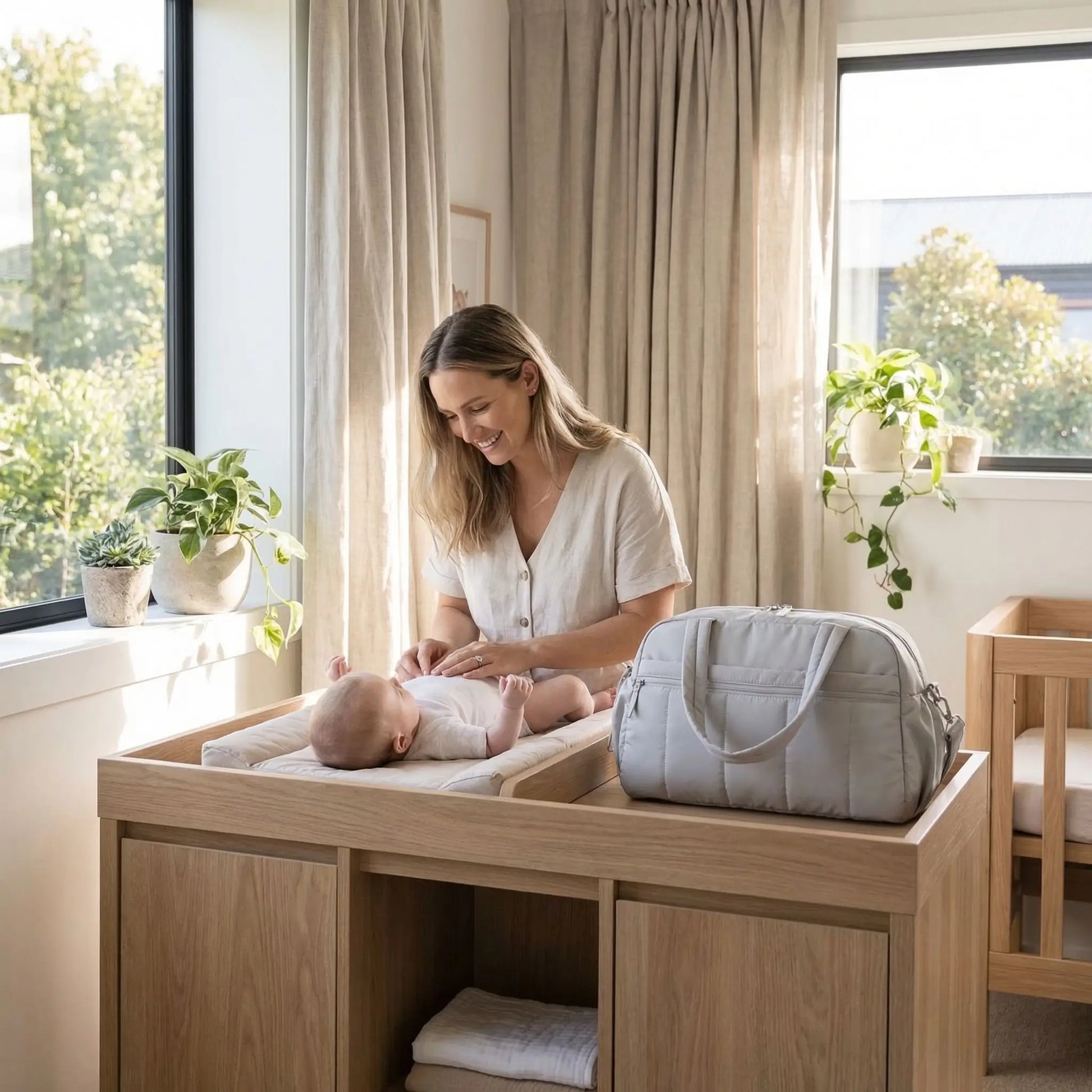 Retrouvez le sac a langer gris légèreté dans votre parentalité